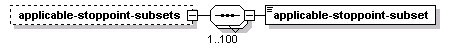 | source | <xs:element name="applicable-stoppoint-subsets" minOccurs="0"> <xs:complexType> <xs:sequence maxOccurs="100"> <xs:element name="applicable-stoppoint-subset" type="CPT-StoppointSubset"/> </xs:sequence> </xs:complexType> </xs:element> |