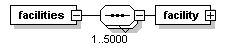 | source | <xs:element name="facilities"> <xs:complexType> <xs:sequence maxOccurs="5000"> <xs:element name="facility" type="CPTTransitFacility"/> </xs:sequence> </xs:complexType> </xs:element> |
