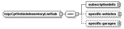 | source | <xs:complexType name="CptVehicleInventoryListSub"> <xs:sequence> <xs:element name="subscriptionInfo" type="CPTSubscriptionHeader"/> <xs:element name="specific-vehicles" minOccurs="0"> <xs:complexType> <xs:sequence maxOccurs="25000"> <xs:element name="specific-vehicle" type="CPTVehicleIden"/> </xs:sequence> </xs:complexType> </xs:element> <xs:element name="specific-garages" minOccurs="0"> <xs:complexType> <xs:sequence maxOccurs="100"> <xs:element name="specific-garage" type="CPTTransitFacilityIden"/> </xs:sequence> </xs:complexType> </xs:element> </xs:sequence> </xs:complexType> |