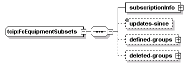 | source | <xs:complexType name="FcEquipmentSubsets"> <xs:sequence> <xs:element name="subscriptionInfo" type="CPTSubscriptionHeader"/> <xs:element name="updates-since" type="CPT-DateTime" minOccurs="0"/> <xs:element name="defined-groups" minOccurs="0"> <xs:complexType> <xs:sequence maxOccurs="30000"> <xs:element name="defined-group" type="FCEquipmentGroup"/> </xs:sequence> </xs:complexType> </xs:element> <xs:element name="deleted-groups" minOccurs="0"> <xs:complexType> <xs:sequence maxOccurs="30000"> <xs:element name="deleted-group" type="FC-FareEquipmentSubset"/> </xs:sequence> </xs:complexType> </xs:element> </xs:sequence> </xs:complexType> |