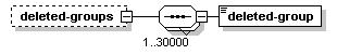 | source | <xs:element name="deleted-groups" minOccurs="0"> <xs:complexType> <xs:sequence maxOccurs="30000"> <xs:element name="deleted-group" type="FC-FareEquipmentSubset"/> </xs:sequence> </xs:complexType> </xs:element> |