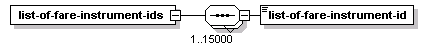 | source | <xs:element name="list-of-fare-instrument-ids"> <xs:complexType> <xs:sequence maxOccurs="15000"> <xs:element name="list-of-fare-instrument-id" type="FC-FareInstrID"/> </xs:sequence> </xs:complexType> </xs:element> |