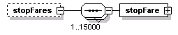 | source | <xs:element name="stopFares" minOccurs="0"> <xs:complexType> <xs:sequence maxOccurs="15000"> <xs:element name="stopFare" type="FCFareDefinitionRecord"/> </xs:sequence> </xs:complexType> </xs:element> |