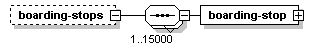 | source | <xs:element name="boarding-stops" minOccurs="0"> <xs:complexType> <xs:sequence maxOccurs="15000"> <xs:element name="boarding-stop" type="CPTStoppointIden"/> </xs:sequence> </xs:complexType> </xs:element> |