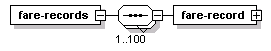 | source | <xs:element name="fare-records"> <xs:complexType> <xs:sequence maxOccurs="100"> <xs:element name="fare-record" type="FCFareRecord"/> </xs:sequence> </xs:complexType> </xs:element> |