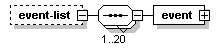 | source | <xs:element name="event-list" minOccurs="0"> <xs:complexType> <xs:sequence maxOccurs="20"> <xs:element name="event" type="FCComponentEventInstance"/> </xs:sequence> </xs:complexType> </xs:element> |