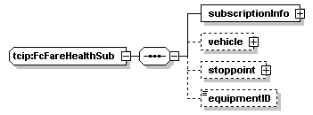 | source | <xs:complexType name="FcFareHealthSub"> <xs:sequence> <xs:element name="subscriptionInfo" type="CPTSubscriptionHeader"/> <xs:element name="vehicle" type="CPTVehicleIden" minOccurs="0"/> <xs:element name="stoppoint" type="CPTStoppointIden" minOccurs="0"/> <xs:element name="equipmentID" type="CPT-SerialNumber" minOccurs="0"/> <!-- individual machine identifier --> </xs:sequence> </xs:complexType> |