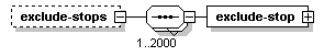 | source | <xs:element name="exclude-stops" minOccurs="0"> <xs:complexType> <xs:sequence maxOccurs="2000"> <xs:element name="exclude-stop" type="CPTStoppointIden"/> </xs:sequence> </xs:complexType> </xs:element> |