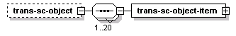 | source | <xs:element name="trans-sc-object" minOccurs="0"> <xs:complexType> <xs:sequence maxOccurs="20"> <xs:element name="trans-sc-object-item" type="FCSCObjectRecord"/> </xs:sequence> </xs:complexType> </xs:element> |