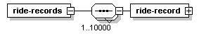 | source | <xs:element name="ride-records"> <xs:complexType> <xs:sequence maxOccurs="10000"> <xs:element name="ride-record" type="FCRideTransaction"/> </xs:sequence> </xs:complexType> </xs:element> |