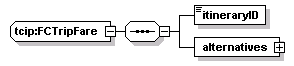 | source | <xs:complexType name="FCTripFare"> <xs:sequence> <xs:element name="itineraryID" type="im:ReferenceID"/> <xs:element name="alternatives"> <xs:complexType> <xs:sequence maxOccurs="10"> <xs:element name="alternative" type="FCTripFareAlternative"/> </xs:sequence> </xs:complexType> </xs:element> </xs:sequence> </xs:complexType> |