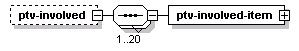| source | <xs:element name="ptv-involved" minOccurs="0"> <xs:complexType> <xs:sequence maxOccurs="20"> <xs:element name="ptv-involved-item" type="IMPTVehicleInvolved"/> </xs:sequence> </xs:complexType> </xs:element> |