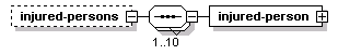 | source | <xs:element name="injured-persons" minOccurs="0"> <xs:complexType> <xs:sequence maxOccurs="10"> <xs:element name="injured-person" type="IMInjury"/> <!-- place where incident occurs --> </xs:sequence> </xs:complexType> </xs:element> |