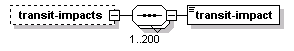 | source | <xs:element name="transit-impacts" minOccurs="0"> <xs:complexType> <xs:sequence maxOccurs="200"> <xs:element name="transit-impact" type="IM-TransitImpacts"/> <!-- dispatch response info --> </xs:sequence> </xs:complexType> </xs:element> |
