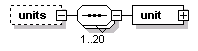 | source | <xs:element name="units" minOccurs="0"> <xs:complexType> <xs:sequence maxOccurs="20"> <xs:element name="unit" type="IMResponseUnit"/> </xs:sequence> </xs:complexType> </xs:element> |