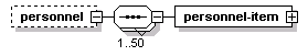 | source | <xs:element name="personnel" minOccurs="0"> <xs:complexType> <xs:sequence maxOccurs="50"> <xs:element name="personnel-item" type="IMResponsePerson"/> </xs:sequence> </xs:complexType> </xs:element> |