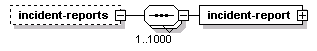 | source | <xs:element name="incident-reports" minOccurs="0"> <xs:complexType> <xs:sequence maxOccurs="1000"> <xs:element name="incident-report" type="IMIncidentInfo"/> </xs:sequence> </xs:complexType> </xs:element> |