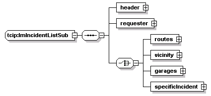 | source | <xs:complexType name="ImIncidentListSub"> <xs:sequence> <xs:element name="header" type="CPTSubscriptionHeader"/> <xs:element name="requester" type="CPTEmployeeIden"/> <xs:choice> <xs:element name="routes"> <xs:complexType> <xs:sequence maxOccurs="500"> <xs:element name="route" type="SCHRouteIden"/> </xs:sequence> </xs:complexType> </xs:element> <xs:element name="vicinity" type="SPPoint"/> <xs:element name="garages"> <xs:complexType> <xs:sequence maxOccurs="100"> <xs:element name="garage" type="CPTTransitFacilityIden"/> </xs:sequence> </xs:complexType> </xs:element> <xs:element name="specificIncident" type="IMIncidentIden"/> </xs:choice> </xs:sequence> </xs:complexType> |