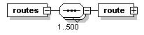 | source | <xs:element name="routes"> <xs:complexType> <xs:sequence maxOccurs="500"> <xs:element name="route" type="SCHRouteIden"/> </xs:sequence> </xs:complexType> </xs:element> |