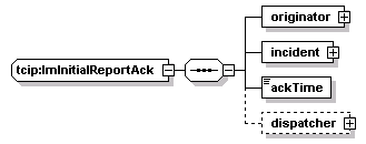 | source | <xs:complexType name="ImInitialReportAck"> <xs:sequence> <xs:element name="originator" type="CPTEmployeeIden"/> <xs:element name="incident" type="IMIncidentIden"/> <xs:element name="ackTime" type="CPT-DateTime"/> <xs:element name="dispatcher" type="CPTEmployeeIden" minOccurs="0"/> </xs:sequence> </xs:complexType> |