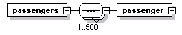 | source | <xs:element name="passengers"> <xs:complexType> <xs:sequence maxOccurs="500"> <xs:element name="passenger" type="IMPerson"/> <!-- passengers in the vehicle --> </xs:sequence> </xs:complexType> </xs:element> |