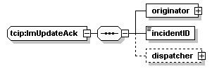 | source | <xs:complexType name="ImUpdateAck"> <xs:sequence> <xs:element name="originator" type="CPTEmployeeIden"/> <xs:element name="incidentID" type="IM-IncidentID"/> <xs:element name="dispatcher" type="CPTEmployeeIden" minOccurs="0"/> </xs:sequence> </xs:complexType> |