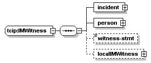 | source | <xs:complexType name="IMWitness"> <xs:sequence> <xs:element name="incident" type="IMIncidentIden"/> <xs:element name="person" type="IMPerson"/> <xs:element name="witness-stmt" type="IM-WitnessStatement" minOccurs="0"/> <xs:element name="localIMWitness" type="local:IMWitness" minOccurs="0"/> </xs:sequence> </xs:complexType> |