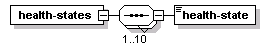 | source | <xs:element name="health-states"> <xs:complexType> <xs:sequence maxOccurs="10"> <xs:element name="health-state" type="CPT-HealthStatus"/> </xs:sequence> </xs:complexType> </xs:element> |