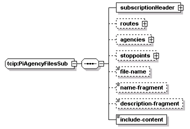 | source | <xs:complexType name="PiAgencyFilesSub"> <xs:sequence> <xs:element name="subscriptionHeader" type="CPTSubscriptionHeader"/> <xs:element name="routes" minOccurs="0"> <xs:complexType> <xs:sequence maxOccurs="100"> <xs:element name="route" type="SCHRouteIden"/> </xs:sequence> </xs:complexType> </xs:element> <xs:element name="agencies" minOccurs="0"> <xs:complexType> <xs:sequence maxOccurs="5"> <xs:element name="agency" type="CPT-AgencyID"/> </xs:sequence> </xs:complexType> </xs:element> <xs:element name="stoppoints" minOccurs="0"> <xs:complexType> <xs:sequence maxOccurs="100"> <xs:element name="stoppoint" type="CPTStoppointIden"/> </xs:sequence> </xs:complexType> </xs:element> <xs:element name="file-name" type="CPT-Footnote" minOccurs="0"/> <xs:element name="name-fragment" type="CPT-Footnote" minOccurs="0"/> <xs:element name="description-fragment" type="CPT-Footnote" minOccurs="0"/> <xs:element name="include-content" type="CPT-Boolean"/> </xs:sequence> </xs:complexType> |