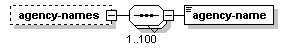 | source | <xs:element name="agency-names" minOccurs="0"> <xs:complexType> <xs:sequence maxOccurs="100"> <xs:element name="agency-name" type="CPT-AgencyName"/> </xs:sequence> </xs:complexType> </xs:element> |