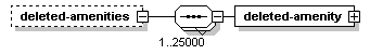 | source | <xs:element name="deleted-amenities" minOccurs="0"> <xs:complexType> <xs:sequence maxOccurs="25000"> <xs:element name="deleted-amenity" type="PIAmenityIden"/> </xs:sequence> </xs:complexType> </xs:element> |