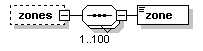 | source | <xs:element name="zones" minOccurs="0"> <xs:complexType> <xs:sequence maxOccurs="100"> <xs:element name="zone" type="PIServiceZoneIden"/> </xs:sequence> </xs:complexType> </xs:element> |