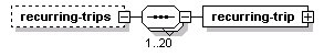 | source | <xs:element name="recurring-trips" minOccurs="0"> <xs:complexType> <xs:sequence maxOccurs="20"> <xs:element name="recurring-trip" type="PIRecurringTrip"/> </xs:sequence> </xs:complexType> </xs:element> |