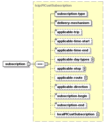 | children | subscription-type delivery-mechanism applicable-trip applicable-time-start applicable-time-end applicable-day-types applicable-stop applicable-route applicable-direction subscription-begin subscription-end localPICustSubscription | ||||