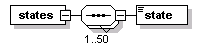| source | <xs:element name="states"> <xs:complexType> <xs:sequence maxOccurs="50"> <xs:element name="state" type="lrms:Text-name255"/> </xs:sequence> </xs:complexType> </xs:element> |