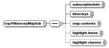 | source | <xs:complexType name="PiItineraryMapSub"> <xs:sequence> <xs:element name="subscriptionInfo" type="CPTSubscriptionHeader"/> <xs:element name="itinerarys"> <xs:complexType> <xs:sequence maxOccurs="50"> <xs:element name="itinerary" type="atis:Route"/> </xs:sequence> </xs:complexType> </xs:element> <xs:element name="map-contents" minOccurs="0"> <xs:complexType> <xs:sequence maxOccurs="200"> <xs:element name="map-content" type="CPT-FeatureType"/> </xs:sequence> </xs:complexType> </xs:element> <xs:element name="highlight-items" minOccurs="0"> <xs:complexType> <xs:sequence maxOccurs="50"> <xs:element name="highlight-item" type="CPTGenericIden"/> </xs:sequence> </xs:complexType> </xs:element> <xs:element name="highlight-classes" minOccurs="0"> <xs:complexType> <xs:sequence maxOccurs="50"> <xs:element name="highlight-classe" type="CPT-FeatureType"/> </xs:sequence> </xs:complexType> </xs:element> </xs:sequence> </xs:complexType> |
