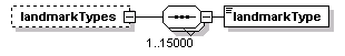 | source | <xs:element name="landmarkTypes" minOccurs="0"> <xs:complexType> <xs:sequence maxOccurs="15000"> <xs:element name="landmarkType" type="PI-LandmarkType"/> </xs:sequence> </xs:complexType> </xs:element> |