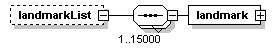 | source | <xs:element name="landmarkList" minOccurs="0"> <xs:complexType> <xs:sequence maxOccurs="15000"> <xs:element name="landmark" type="PILandmark"/> </xs:sequence> </xs:complexType> </xs:element> |