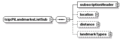 | source | <xs:complexType name="PiLandmarksListSub"> <xs:sequence> <xs:element name="subscriptionHeader" type="CPTSubscriptionHeader"/> <xs:element name="location" type="SPPoint" minOccurs="0"/> <xs:element name="distance" type="lrms:Distance" minOccurs="0"/> <xs:element name="landmarkTypes" minOccurs="0"> <xs:complexType> <xs:sequence maxOccurs="15000"> <xs:element name="landmarkType" type="PI-LandmarkType"/> </xs:sequence> </xs:complexType> </xs:element> </xs:sequence> </xs:complexType> |
