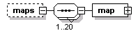 | source | <xs:element name="maps" minOccurs="0"> <xs:complexType> <xs:sequence maxOccurs="20"> <xs:element name="map" type="PIMap"/> </xs:sequence> </xs:complexType> </xs:element> |