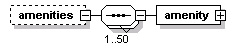 | source | <xs:element name="amenities" minOccurs="0"> <xs:complexType> <xs:sequence maxOccurs="50"> <xs:element name="amenity" type="PIAmenity"/> </xs:sequence> </xs:complexType> </xs:element> |