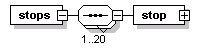 | source | <xs:element name="stops"> <xs:complexType> <xs:sequence maxOccurs="20"> <xs:element name="stop" type="PINearestStop"/> </xs:sequence> </xs:complexType> </xs:element> |