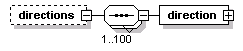 | source | <xs:element name="directions" minOccurs="0"> <xs:complexType> <xs:sequence maxOccurs="100"> <xs:element name="direction" type="atis:ManeuverInstruction"/> </xs:sequence> </xs:complexType> </xs:element> |