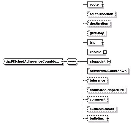 | children | route routeDirection destination gate-bay trip vehicle stoppoint nextArrivalCountdown tolerance estimated-departure comment available-seats bulletins | ||