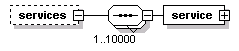 | source | <xs:element name="services" minOccurs="0"> <xs:complexType> <xs:sequence maxOccurs="10000"> <xs:element name="service" type="PIService"/> </xs:sequence> </xs:complexType> </xs:element> |