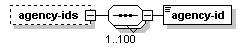 | source | <xs:element name="agency-ids" minOccurs="0"> <xs:complexType> <xs:sequence maxOccurs="100"> <xs:element name="agency-id" type="CPT-AgencyID"/> </xs:sequence> </xs:complexType> </xs:element> |