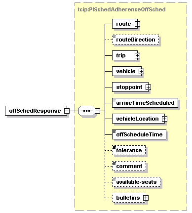 | source | <xs:element name="offSchedResponses" minOccurs="0"> <xs:complexType> <xs:sequence maxOccurs="100"> <xs:element name="offSchedResponse" type="PISchedAdherenceOffSched"/> </xs:sequence> </xs:complexType> </xs:element> |