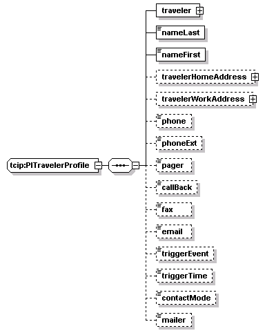 | source | <xs:complexType name="PITravelerProfile"> <xs:sequence> <xs:element name="traveler" type="PITravelerIden"/> <xs:element name="nameLast" type="PI-TravelerLastName"/> <xs:element name="nameFirst" type="PI-TravelerFirstName"/> <xs:element name="travelerHomeAddress" type="lrms:AddressPoint" minOccurs="0"/> <xs:element name="travelerWorkAddress" type="lrms:AddressPoint" minOccurs="0"/> <xs:element name="phone" type="PI-TravelerPhone" minOccurs="0"/> <xs:element name="phoneExt" type="PI-TravelerPhoneExtension" minOccurs="0"/> <xs:element name="pager" type="PI-TravelerPager" minOccurs="0"/> <xs:element name="callBack" type="PI-TravelerCallBack" minOccurs="0"/> <xs:element name="fax" type="PI-TravelerFax" minOccurs="0"/> <xs:element name="email" type="PI-TravelerEmail" minOccurs="0"/> <xs:element name="triggerEvent" type="PI-TravelerTriggerEvent" minOccurs="0"/> <xs:element name="triggerTime" type="CPT-DateTime" minOccurs="0"/> <xs:element name="contactMode" type="PI-TravelerContactMode" minOccurs="0"/> <xs:element name="mailer" type="PI-TravelerMailingMatl" minOccurs="0"/> </xs:sequence> </xs:complexType> |