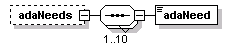 | source | <xs:element name="adaNeeds" minOccurs="0"> <xs:complexType> <xs:sequence maxOccurs="10"> <xs:element name="adaNeed" type="PI-ADANeed"/> </xs:sequence> </xs:complexType> </xs:element> |