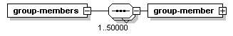 | source | <xs:element name="group-members"> <xs:complexType> <xs:sequence maxOccurs="50000"> <xs:element name="group-member" type="SCHBlockIden"/> </xs:sequence> </xs:complexType> </xs:element> |